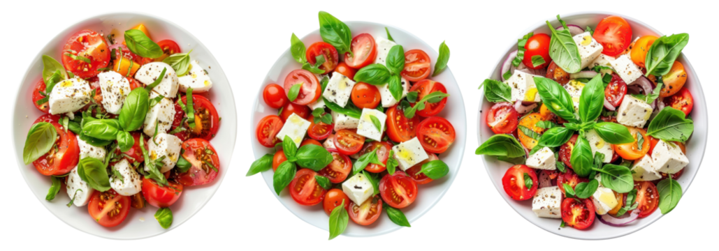 Fresh Greek salad with feta and transparent background for recipes use.