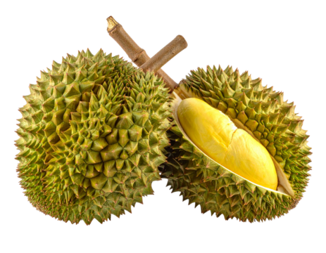 Ripe Durian fruit isolated on transparent and white background.PNG image