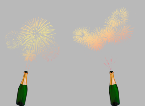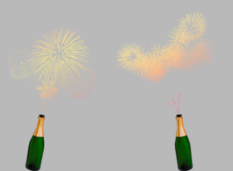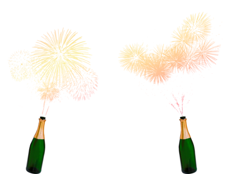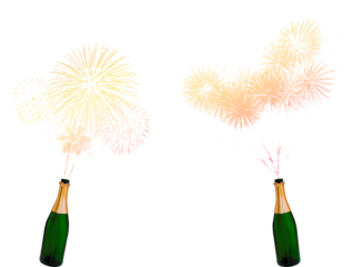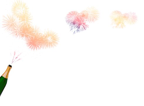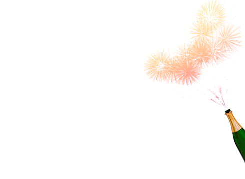 Feuerwerk mit Sektflasche rechts und transparenter Hintergrund.