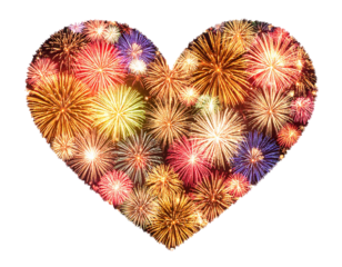 Silvester Feuerwerk in Herzform isoliert – Freisteller auf weißem Hintergrund, transparent