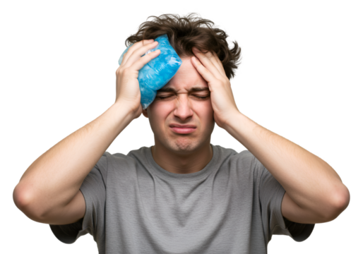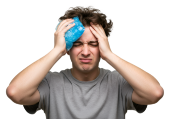 Sick man blowing his nose with a tissue from a white box, isolated on transparent background, perfect for health and hygiene related projects