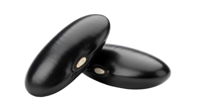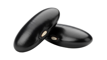 Two shiny black beans isolated PNG on transparent background, healthy legume seeds for vegetarian and vegan cooking