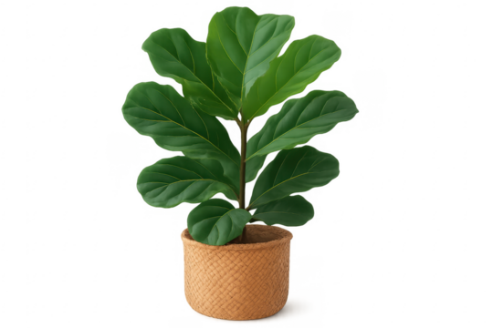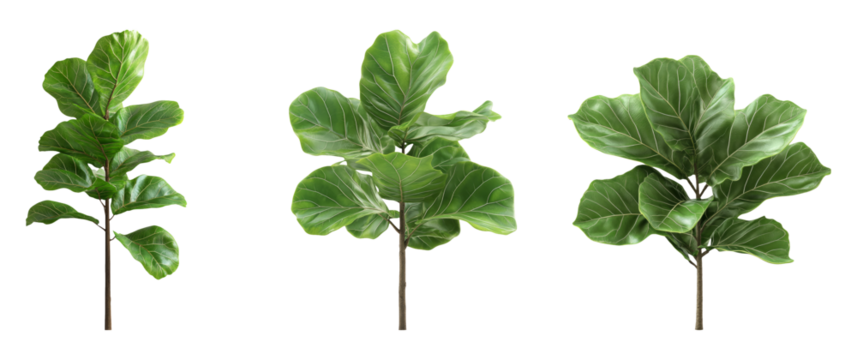 Lush green foliage of fiddle leaf fig plants isolated on a transparent background