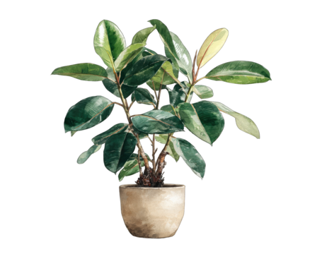 A potted fiddle leaf fig plant with vibrant green leaves, isolated on a transparent background. background removed