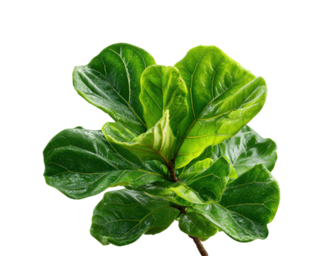 Vibrant green fiddle leaf fig branch isolated on black, Isolated On Transparent Background, Png Cut Out
