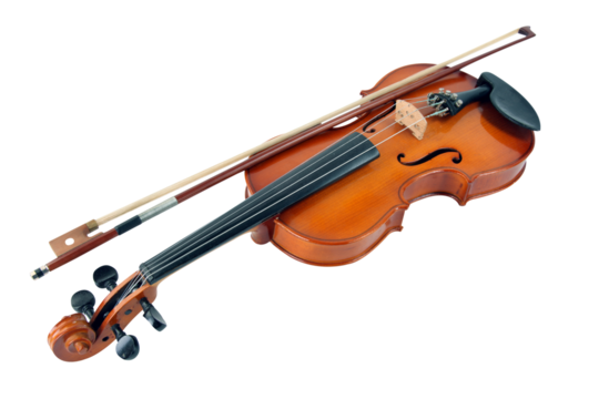 Wooden Violin with Bow cutout isolated transparent bg png
