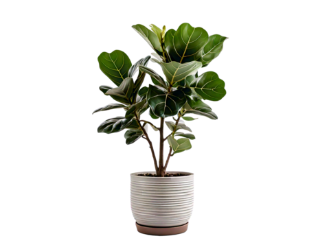 Large house fiddle-leaf fig plant in modern pot or vase isolated on transparent background generative ai