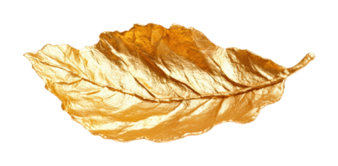 Golden leaf with plasticine texture nature scene high fidelity close-up artistic environment perspective isolated on transparent background png