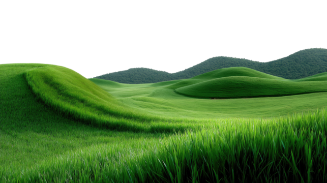 Rolling Green Hills: A mesmerizing panorama of verdant rolling hills under a clear sky, inviting a sense of serenity and harmony, capturing the essence of natural beauty.