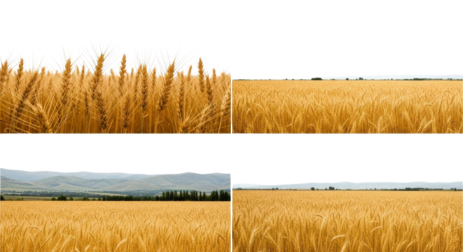 Golden Hour Sunset landscape concept. Vibrant yellow field on transparent background.