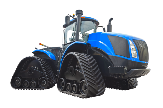 Close-up of a modern Agria mower crawler with tracks, tank, engine and metal parts, isolated on transparent background, PNG