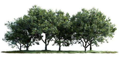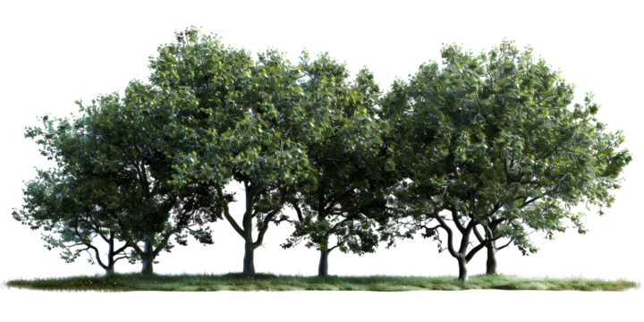 A crafted PNG image of summer green trees, ideal for rendering purposes, set against a daytime backdrop with lush grass and a seamlessly removed background.