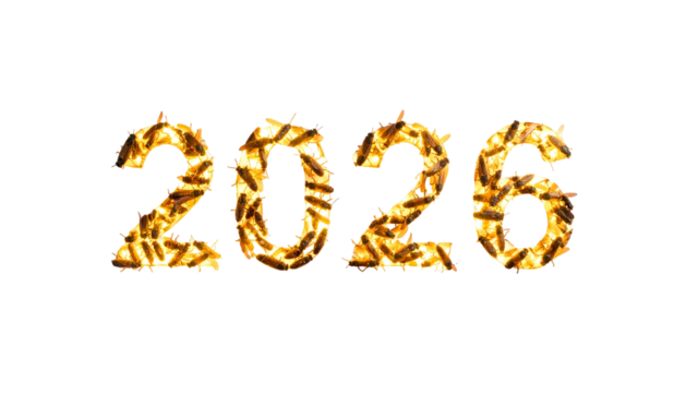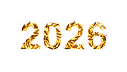 Glowing "2026" text on a black background, with a textured, fiery effect