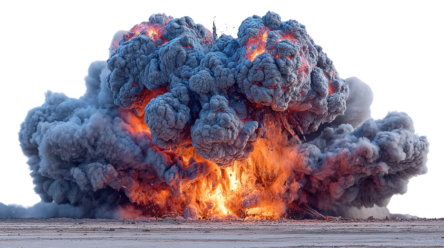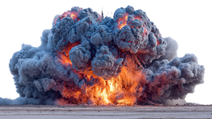 Explosive Energy: A dramatic display of raw power as a fiery explosion erupts, painting the sky with intense heat and billowing smoke in a photorealistic presentation.