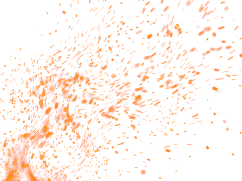 Fire Sparkle Overlay. Glowing Ember Sparks Isolated on Transparent Background. Burn Light Effect.