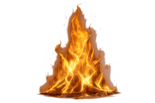 Fiery explosion with intense flames and transparent background