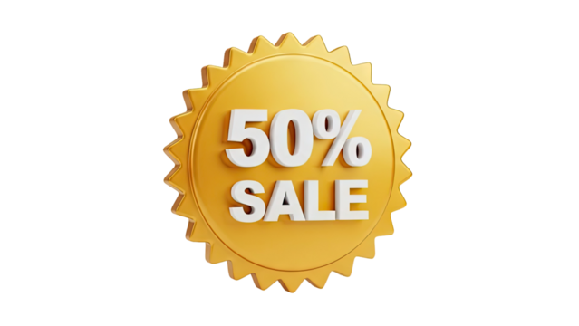 3D 50% Sale Badge on transparent background