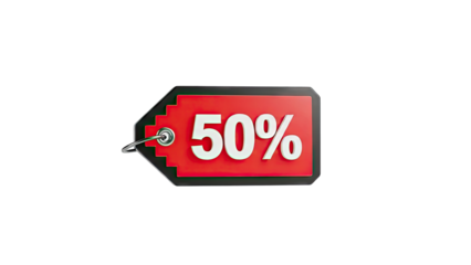 Red price tag showing 50 percent discount, promotion, sale, special offer, shopping, half price reduction