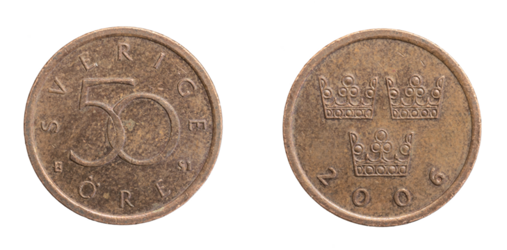 Sweden fifty ore coin on a white isolated background