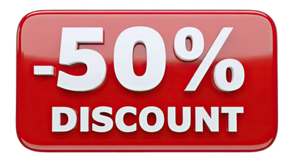 Red 3 D Fifty Percent Symbol isolated on a transparent background 1
