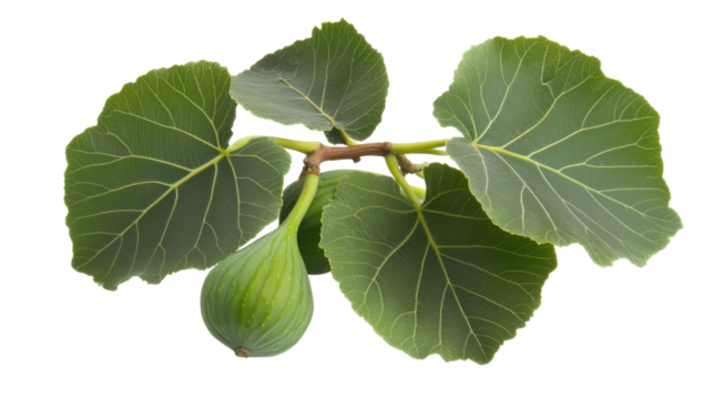 Fresh Green Fig Leaves on Transparent Background for Culinary and Botanical Uses