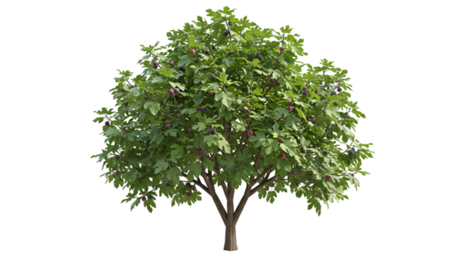 PNG of A detailed view of a fig tree branch featuring lush green leaves and ripening figs, showcasing nature's vibrant palette.