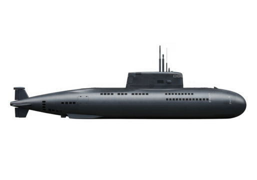 Modern submarine design isolated against a black background, military concept