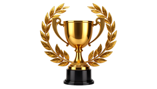 Golden trophy with laurel wreath, symbol of victory, success, achievement, and championship
