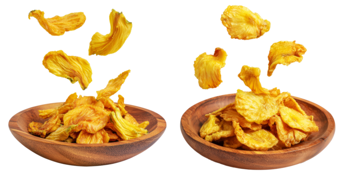 Set of Fiji takeaway and street foods fried breadfruit chips rustic alternative to potato chips on white transparent background