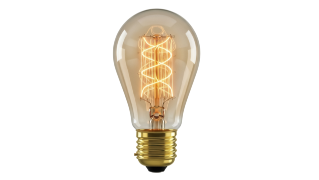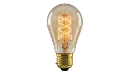 Vintage Edison light bulb PNG isolated on transparent background, antique style filament lamp for retro design and decoration