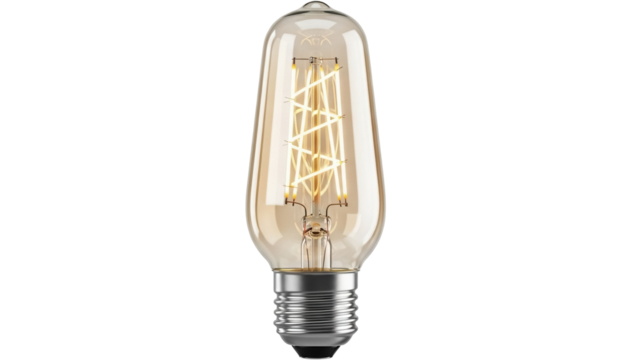 Vintage Edison light bulb isolated PNG on transparent background, antique style filament lamp for retro decor and lighting design