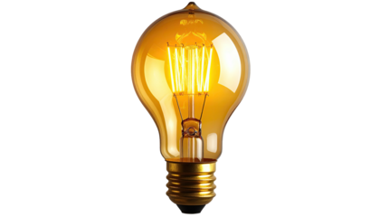 Vintage Edison bulb isolated PNG on transparent background, antique style lightbulb with glowing filament for retro design and decoration