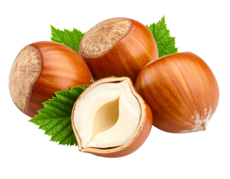 A pieces of hazelnuts isolated on transparent background