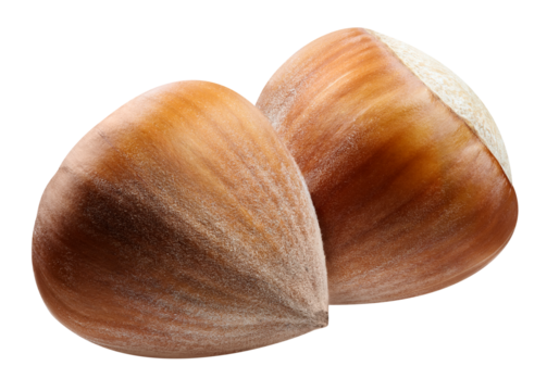 Hazelnuts isolated on a transparent background. Two hazelnut with PNG