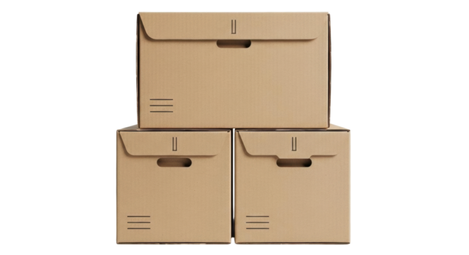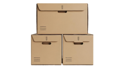 Stack of Three Plain brown Cardboard Boxes | Isolated on Transparent & White Background | PNG File with Transparency