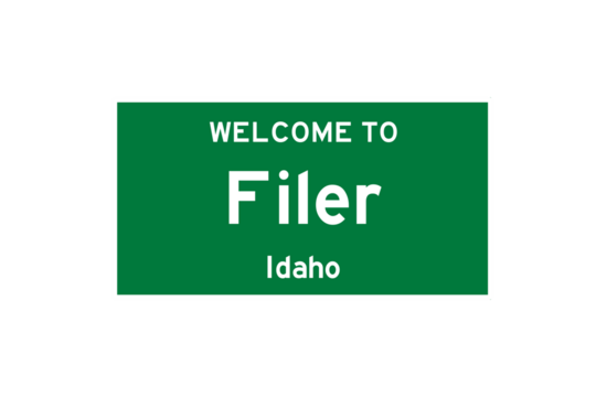 Filer, Idaho, USA. City limit sign on transparent background.