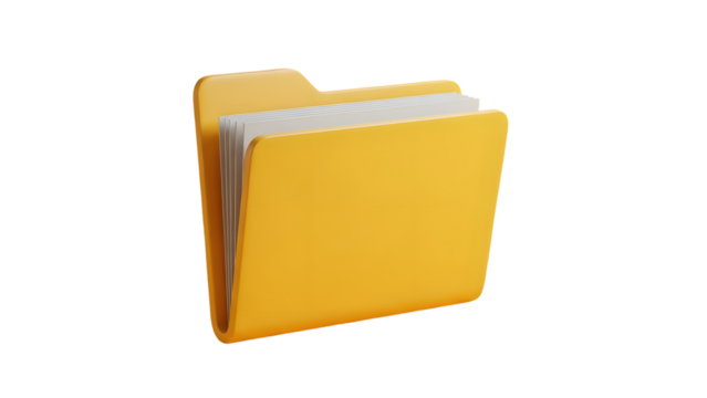 Yellow file folder icon on transparent background