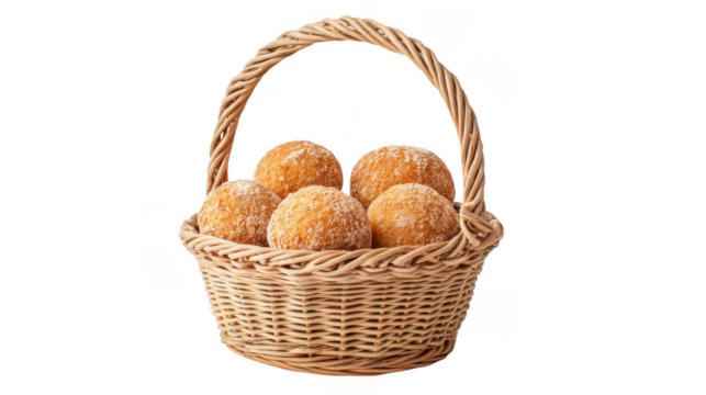 A rustic basket filled with golden sweet rolls, ready to be enjoyed during a warm afternoon snack