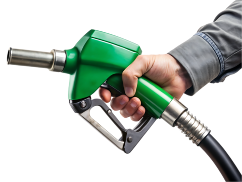 Fuel pump nozzle dispensing golden liquid droplet with black background transparent background white background