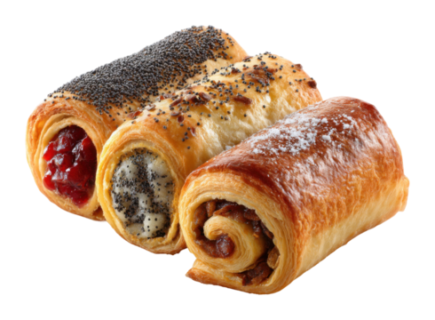 Delicious pastries with sweet fillings bakery food cozy environment top view temptation isolated on transparent background