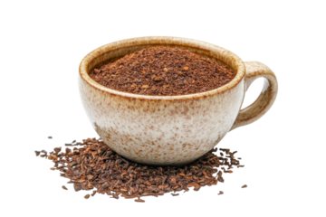 Aromatic coffee with a frothy crema fills a rustic, handcrafted ceramic mug, set against a transparent background, ready for integration into diverse design projects