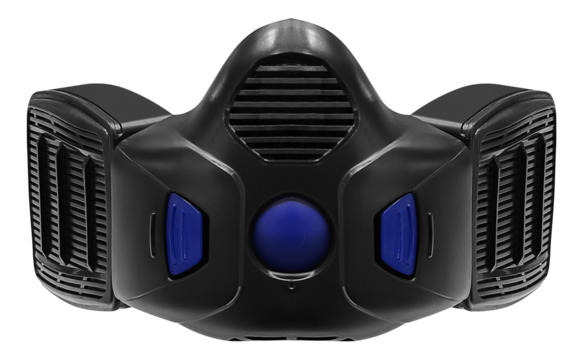 Face Mask With Blue Filter. The mask is designed to filter out particles and protect the wearer. The blue filter adds an extra layer of protection. On PNG Transparent Clear Background.