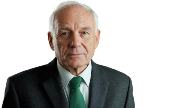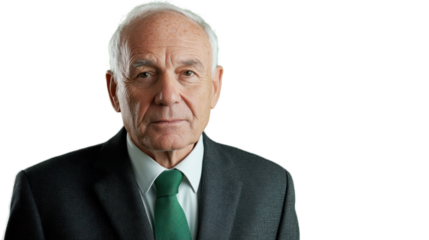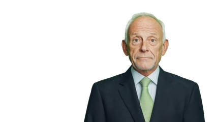 Serious senior businessman looking directly with transparent background