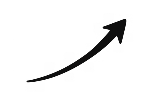 Black isolated arrow vector increasing diagonally, symbolizing business improvement, rising statistics, profit, and development