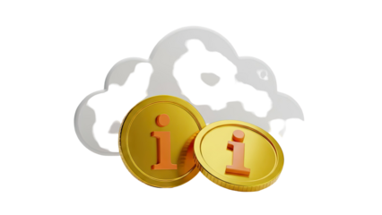 Gold Coins with 'i' Symbol and Cloud Shape