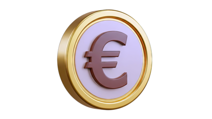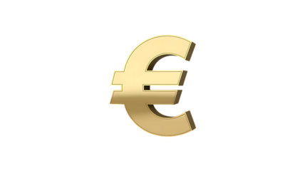 Golden Euro Currency Symbol on transparent Background Metallic Euro symbol