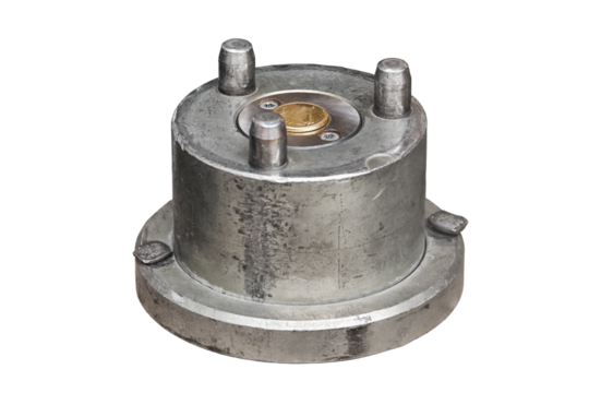 Coinage of ancient Roman coins made of metal on a retro press, isolated on a white background. Reconstruction of the events of the Roman Empire