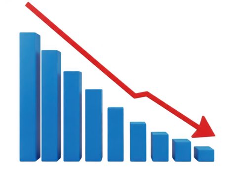 Decreasing Blue Bar Chart with Downward Sloping Red Arrow