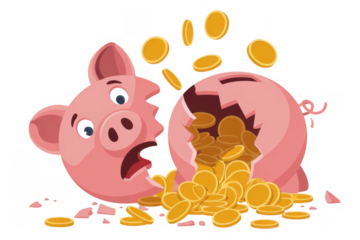 Broken Piggy Bank with Coins money finance isolated on a transparent background