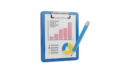 Conceptual illustration of business data analysis and upward performance trend isolated on transparent background